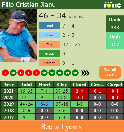 Cristian has a composed 46-35 win-loss record in 2021, 7-4 on hard (See FULL STATS).