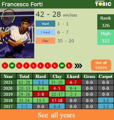 Francesco has a composed 42-28 win-loss record in 2021, 6-7 on indoor hard courts (See FULL STATS).