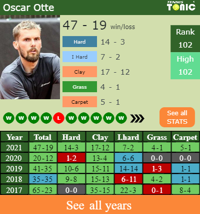 Talking about his overall career, Otte has an overall 339-188 record. He has a positive 60-42 record on indoor hard courts.