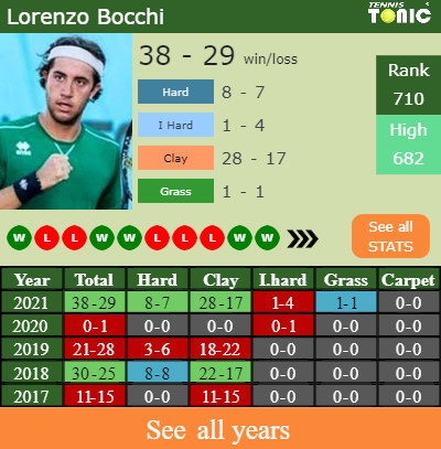 The Italian has a compiled 38-29 win-loss record in 2021, 28-17 on clay (See FULL STATS).