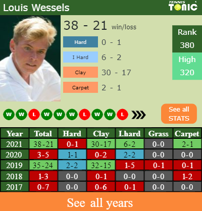 Louis has an overall 38-21 win-loss record in 2021, 30-17 on clay (See FULL STATS).