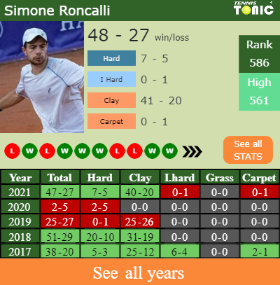 Simone has a composed 47-27 win-loss record in 2021, 40-20 on clay (See FULL STATS).