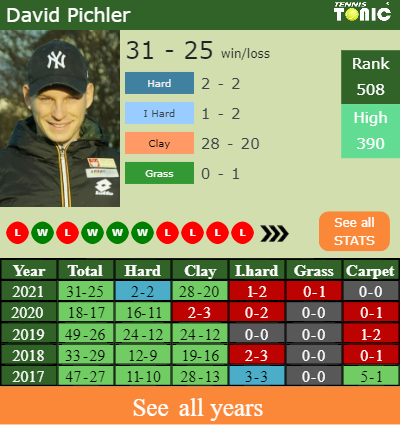 David has an overall 31-25 win-loss record in 2021, 28-20 on clay (See FULL STATS).
