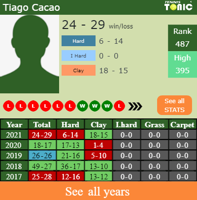 Tiago has a compiled 24-29 win-loss record in 2021, 18-15 on clay (See FULL STATS).