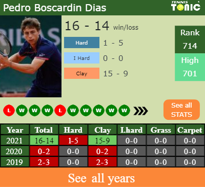 In terms of his career, Pedro has an overall 18-19 record. He has a positive 17-14 record on clay.