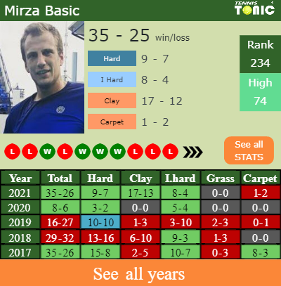 The pick for Tennis Tonic is Mirza Basic who should win in 2 sets.