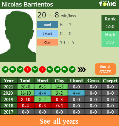 Nicolas has a compiled 20-8 win-loss record in 2021, 14-5 on clay (See FULL STATS).