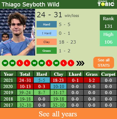The Brazilian has a composed 24-31 win-loss record in 2021, 5-5 on hard (See FULL STATS).