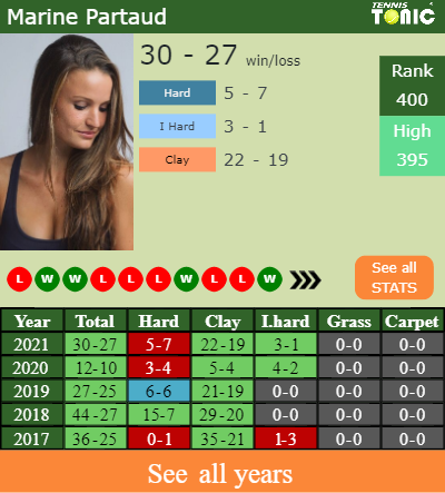 In the qualifications, The French player had a good straight sets win against Cascino (7-5 6-4). During the match Partaud scored 72 points vs Cascino’s 65. Marine was quite aggressive to blast 34 winners.