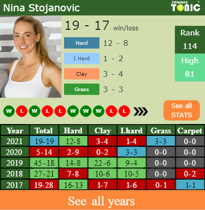 Nina has a composed 19-19 win-loss record in 2021, 1-4 on indoor hard courts (See FULL STATS).