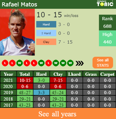 The Brazilian has a compiled 10-15 win-loss record in 2021, 3-0 on hard (See FULL STATS).
