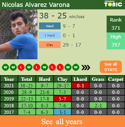 Alvarez Varona has a solid record in the last 6 years having won 61% of his matches (125-81). 9-7 on hard in 2021. Talking about his performance on the same surface of this tournament, Alvarez Varona has a compiled68-38 win-loss record in the last 6 years on hard.