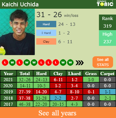 Kaichi has a composed 32-26 win-loss record in 2021, 24-13 on hard (See FULL STATS).