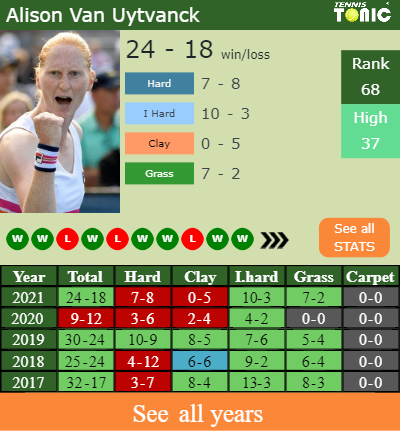 Van Uytvanck has a compiled 24-18 win-loss record in 2021, 10-3 on indoor hard courts (See FULL STATS).
