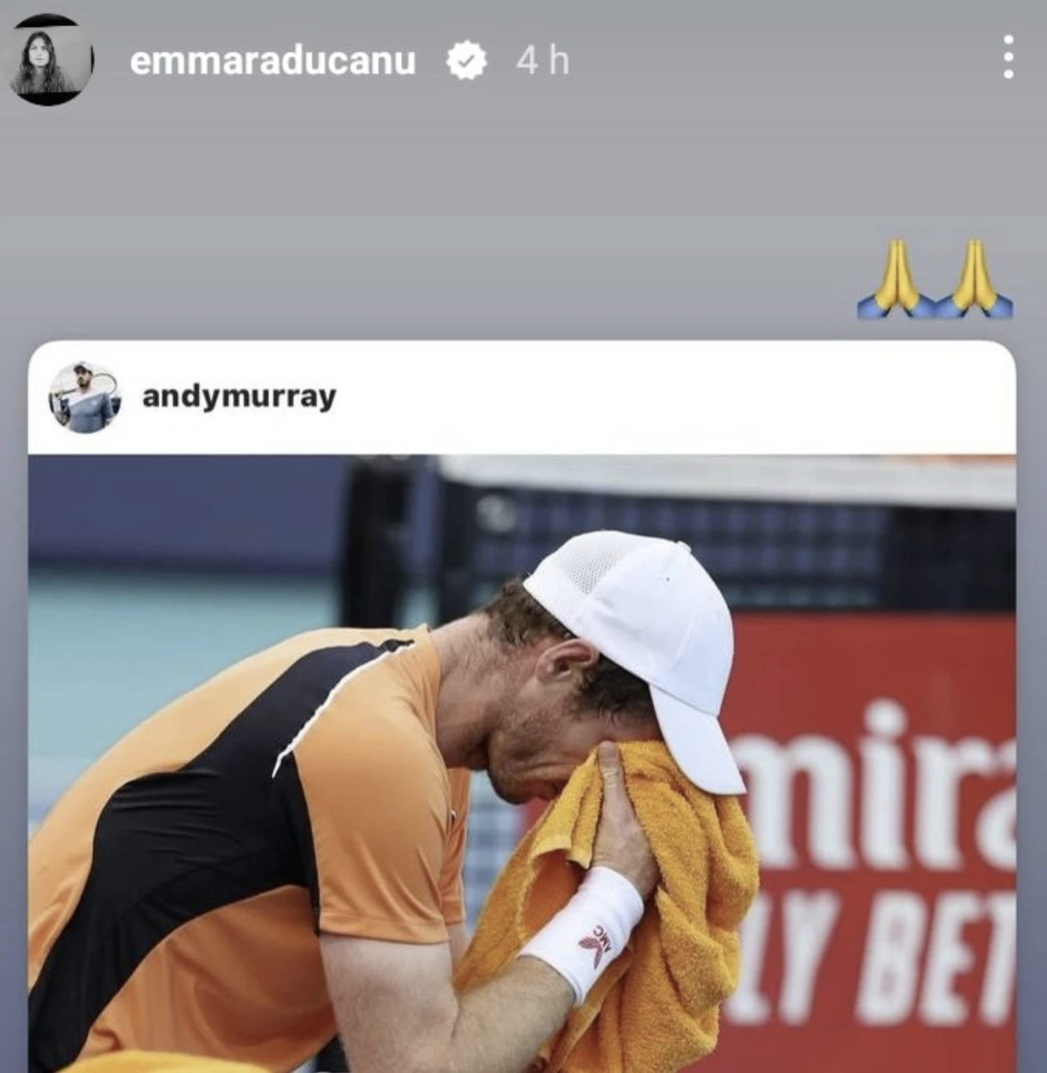 Emma Raducanu, despite her own setback with a back injury sidelining her from the Miami Open, stood in solidarity with Murray. Sharing his post on Instagram, Raducanu added two praying emojis, symbolizing her hopes for his swift recovery.