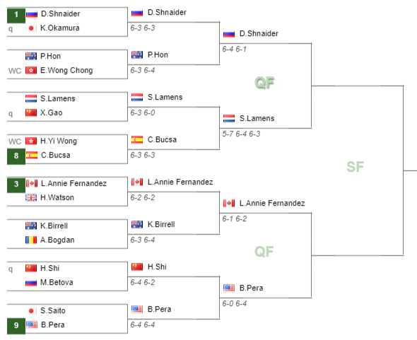 Leylah Annie Fernandez, Anastasia Zakharova, Sofia Kenin, Suzan Lamens reach the quarter in Hong Kong on Thursday.