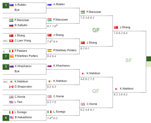 - Kei NishikoriNishikori – Cameron NorrieNorrie (6-3 3-6 6-2)