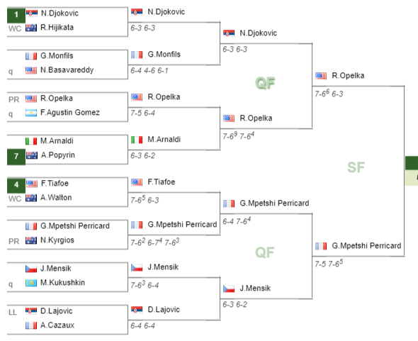 - Reilly OpelkaOpelka – Novak DjokovicDjokovic (7-6(6) 6-3)