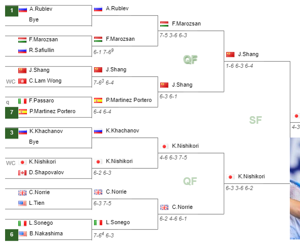 • Kei NishikoriNishikoriJuncheng ShangShang (4-3 ret.)