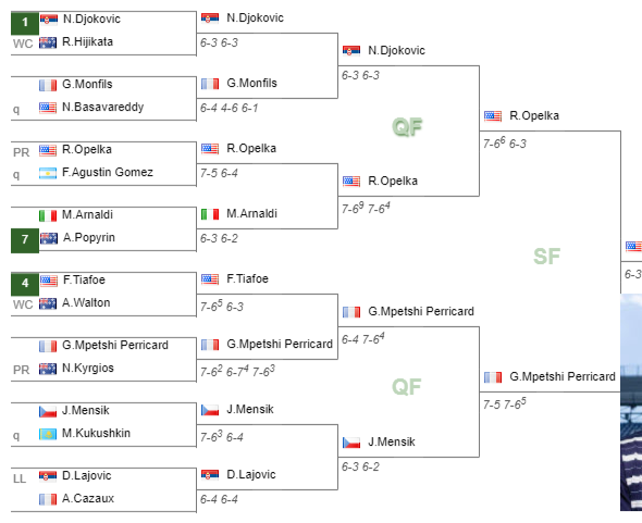 - Reilly OpelkaOpelka – Giovanni Mpetshi PerricardMpetshi Perricard (6-3 7-6(4))