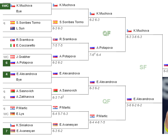- Ekaterina AlexandrovaAlexandrova – Karolina MuchovaMuchova (6-0 6-4)