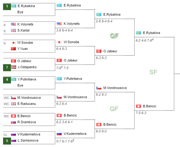 - Belinda BencicBencic – Marketa VondrousovaVondrousova (7-5 6-3)