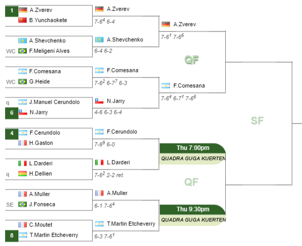 - Francisco ComesanaComesana – Nicolas JarryJarry (7-6(4) 6-7(1) 7-6(6))