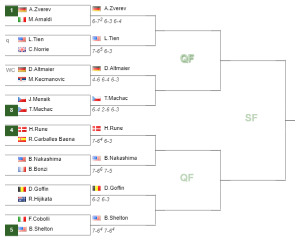 - Alexander ZverevZverev – Matteo ArnaldiArnaldi (6-7(2) 6-3 6-4)