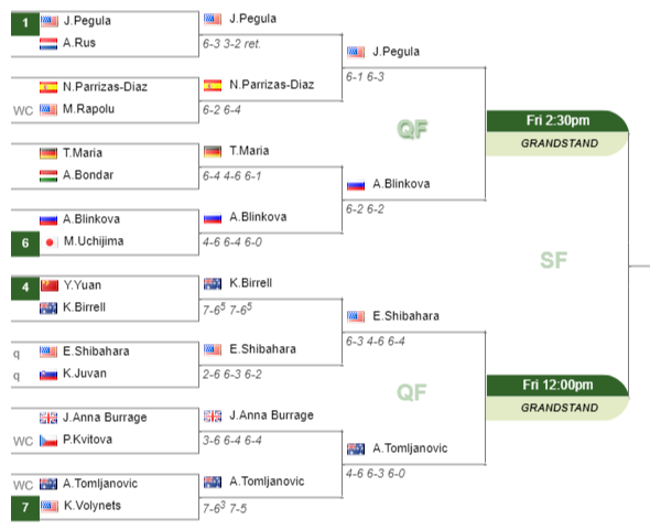 - Caroline DolehideDolehide – Varvara GrachevaGracheva (5-7 6-2 6-2)