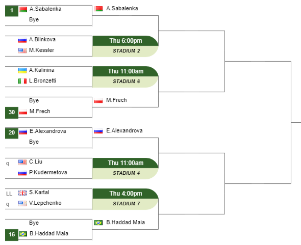 Victoria Azarenka will take on the world no.9 Qinwen Zheng in the 2nd round. The head to head is 2-0 for Azarenka.