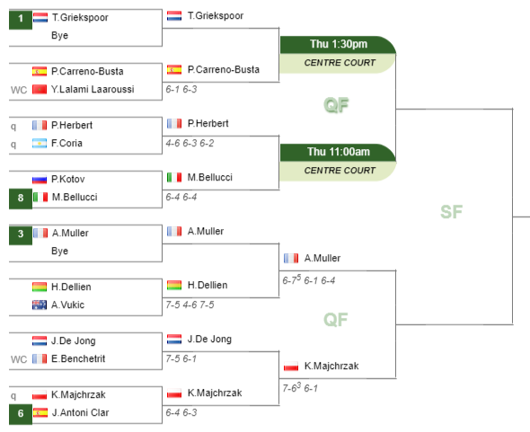 Nuno Borges will fight against the world no.51 Roberto Carballes Baena in the quarter. Their current head to head is 1-0 for Borges.