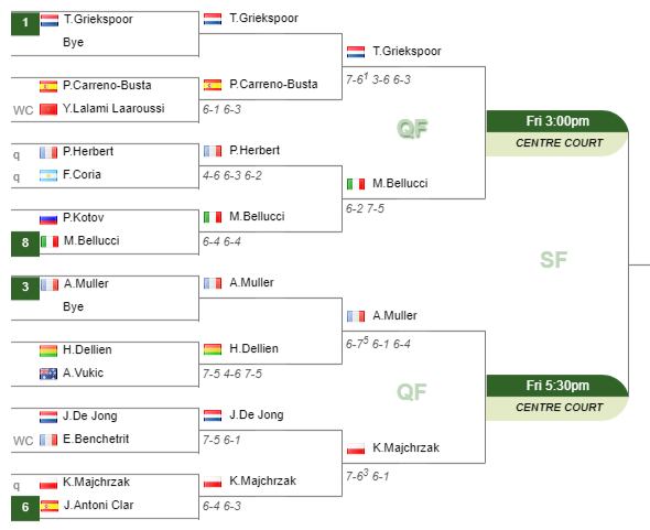 - Tallon GriekspoorGriekspoor – Pablo Carreno-BustaCarreno-Busta (7-6(1) 3-6 6-3)