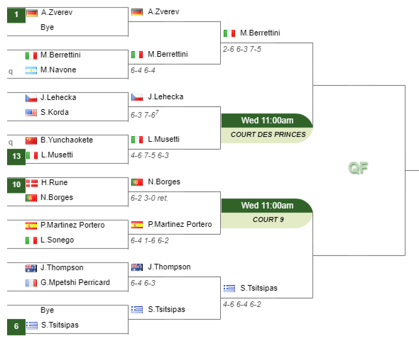 WWWLWWLWWL Now the world no.34, Berrettini played his last match on the 8th of April when he beat world no.2 Alexander Zverev 2-6 6-3 7-5 in the 2nd round in Monte-Carlo Rolex Masters (draw).