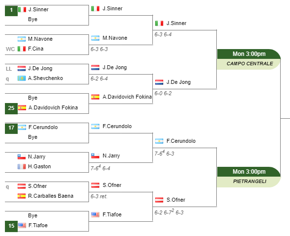 These are the latest results of the ATP tournament that took place in Rome on Sunday