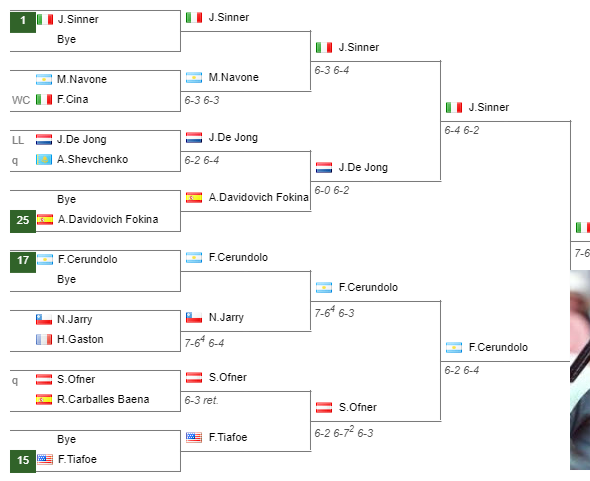 Casper Ruud will play the world no.1 Jannik Sinner in the quarter on Thursday at 7:00 pm on SUPERTENNIS ARENA. The head to head is 3-0 for Sinner.