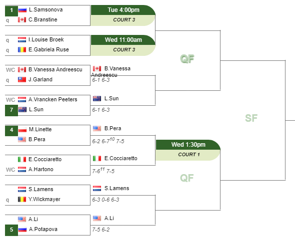 - Bianca Vanessa AndreescuVanessa Andreescu – Joanna GarlandGarland (6-1 6-3)