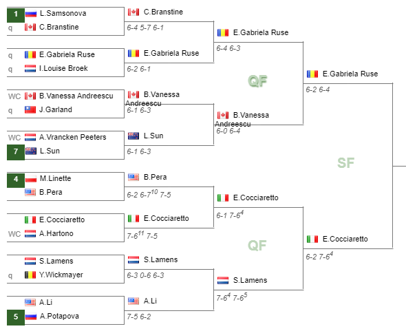- Elena Gabriela RuseGabriela Ruse – Bianca Vanessa AndreescuVanessa Andreescu (6-2 6-4)