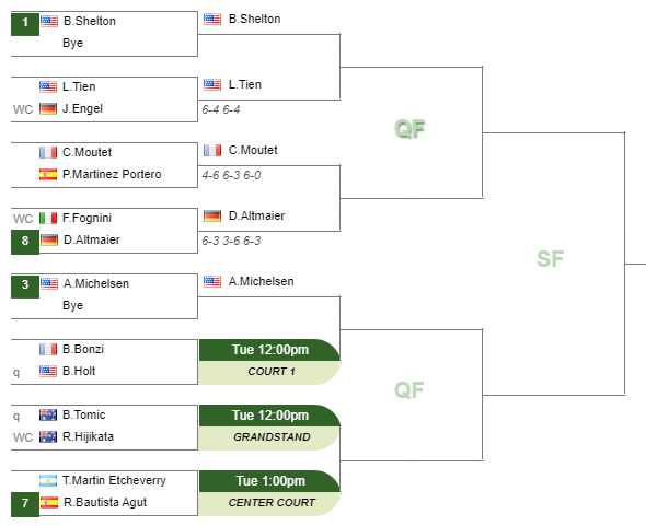 - Ethan QuinnQuinn – Camilo Ugo CarabelliUgo Carabelli (6-3 6-2)
