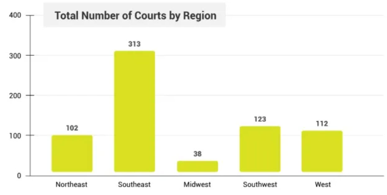 The United States continues to face a major infrastructure challenge in spite of the development. The country is significantly behind Sweden and Spain, where the ratios are closer to 2,000 and 3,000, respectively, with about 505,000 persons per padel court. This disparity emphasizes the necessity for focused investment in facilities across various locations as well as the possibility for growth.