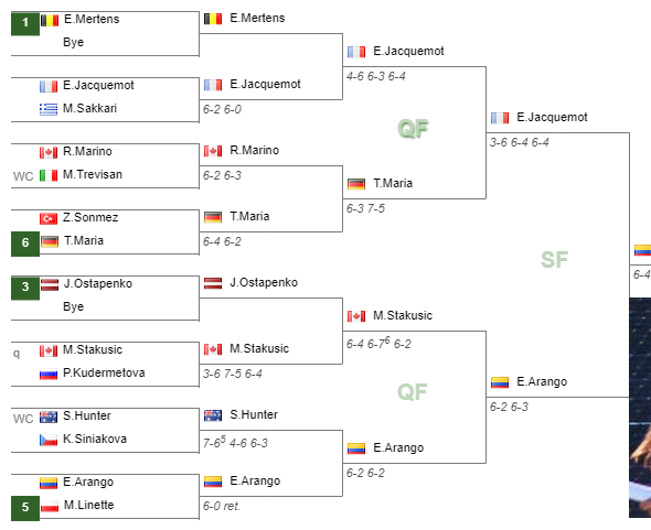 - Emiliana ArangoArango – Elsa JacquemotJacquemot (6-4 7-5)