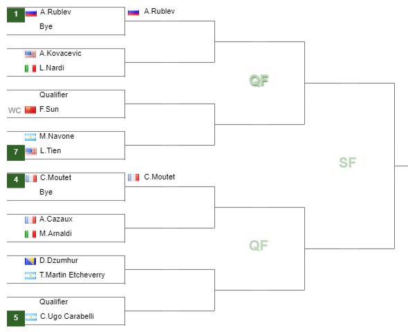 Andrey Rublev, Daniil Medvedev, Alexander Bublik, Corentin Moutet are the players leading the ATP draw in Hangzhou. The defending champion is Marin Cilic who conquered the last tournament after defeating Zhizhen Zhang 7-6(5) 7-6(5) in the final. The winner will take home $154,980 in prize money while the runner-up will earn $90,435.