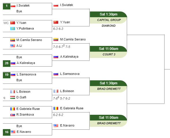 - Leylah Annie FernandezAnnie Fernandez – Maria SakkariSakkari (6-2 6-0)