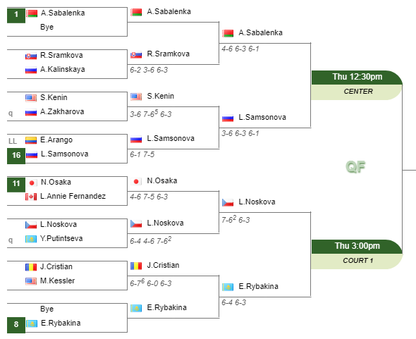 - Linda NoskovaNoskova – Naomi OsakaOsaka (7-6(2) 6-3)