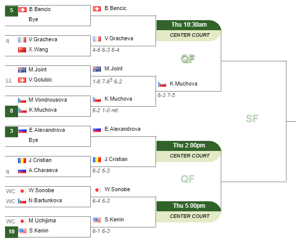 Anna Kalinskaya will take on the world no.17 Linda Noskova in the quarter. Their head to head is 1-0 for Noskova.