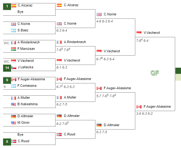 - Felix Auger-AliassimeAuger-Aliassime – Daniel AltmaierAltmaier (3-6 6-3 6-2)