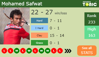 The Egyptian has a 22-27 win-loss record in 2019, 15-14 on clay (See FULL STATS).