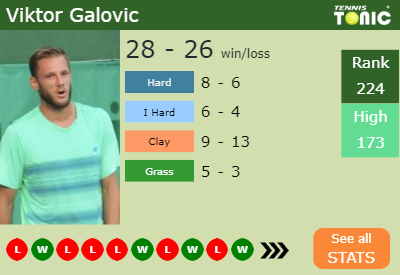 - Viktor GalovicGalovic – Alejandro Davidovich FokinaDavidovich Fokina (0-0) – See H2H details