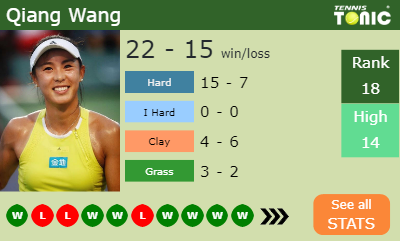 Qiang has a 22-15 win-loss record in 2019, 15-7 on hard (See FULL STATS).