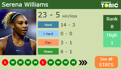Williams has a 23-5 win-loss record in 2019, 14-3 on hard (See FULL STATS).