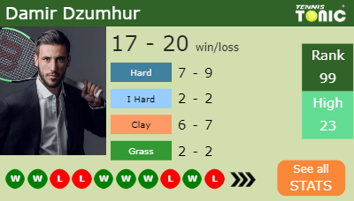 Damir has a 17-20 win-loss record in 2019, 7-9 on hard (See FULL STATS).